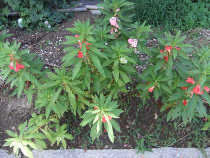 8月4日 6年生の花壇には,理科の実験で使ったホウセンカが綺麗な花を付けています。