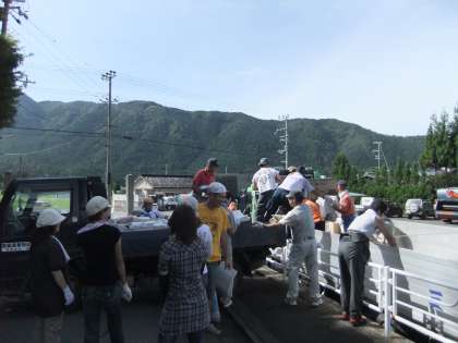 8月7日(日) 今日は,日曜日ですが地域廃品回収が実施されました。山国地域と黒田地域の2箇所に別れて取り組みました。廃品回収には,地域の方々をはじめ、教職員も参加し、早朝から頑張って行いました。暑い中,本当にご苦労さまでした。