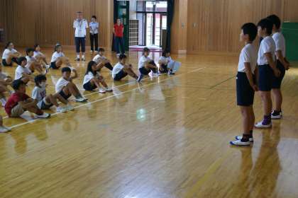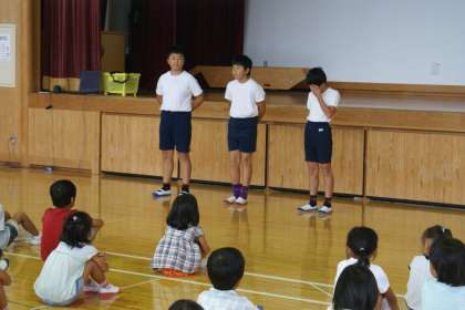 今日の朝会で運動会の各色スローガンの発表がありました。運動会に向けてみんなだんだんと盛り上がってきています。