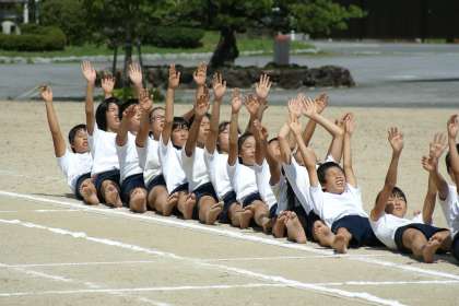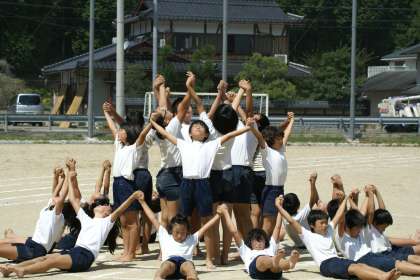 高学年4・5・6年生の組体操の練習です。完成に近づきみんな気合いが入っています。