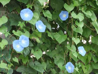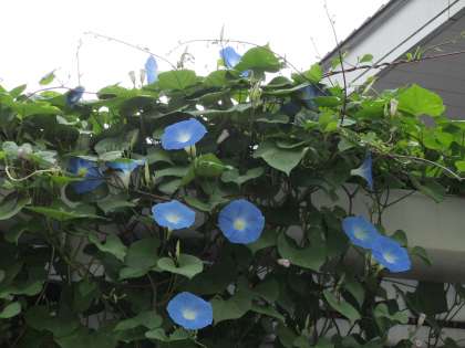 9月14日 今朝は,空の色と同じスカイブルーのアサガオが見事に花開いていました。