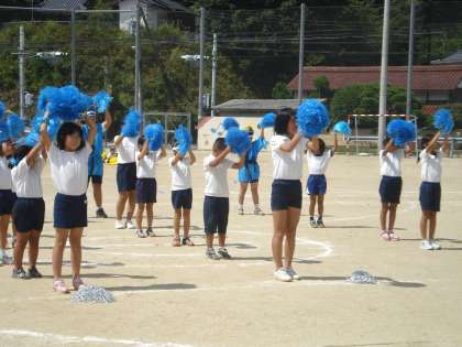 9月15日 赤・青・黄色の応援合戦は,6年生を中心にまとまっていました。1年生も一生懸命頑張って踊ったり三三七拍子をしたりしていました。頼もしい限りです。