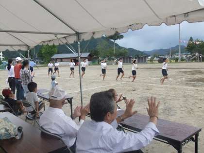 9月17日 急な雨で組体操が途中で中断し,PTAの皆さんのご協力で砂をまき再度組体操を演じました。見事な組体操で周りの観衆から拍手喝采でした。泣いておられるお母さんもおられました。高学年の先生の笑みが何とも言えませんでした。みんな,感動をありがとう!