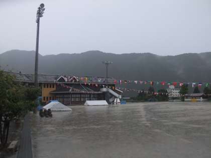 9月20日 昨日の午後から雨が続いています。7時現在,京都市には大雨注意報が出ています。明日,大雨警報が出る可能性があります。十分登下校注意を願います。