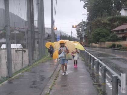 9月20日 雨の中,子ども達は元気に登校してきました。欠席は「0」で,この連休ゆっくり休んでくれたことと思います。今後の天気が気になるところです。