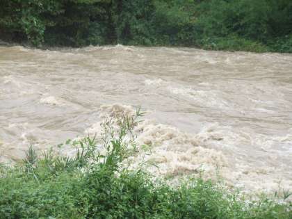 校区のパトロール実施,校区の上桂川は濁流ですごい水量です!