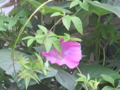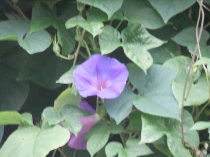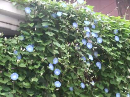 9月26日 今日の京北は15度。この時期,緑のカーテンを作っているヘブンリーブル−は,空色のままですがオーシャンブルーは温度が低くなってくると紺色からピンクに少しずつ変化してきます。