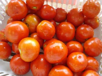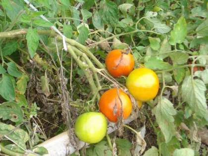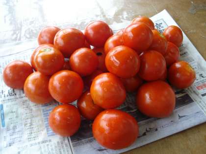 9月26日 学級園に植えたトマトの苗が大きく成長して,この夏多くのトマトを収穫できました。9月も下旬になった今日,まだ30個ほどの真っ赤なトマトが穫れました。一本の苗から20〜30個のトマトが収穫出来ました。いつまで穫れるのかな?