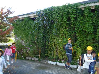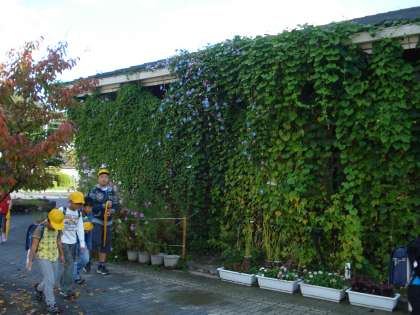 10月6日 昨日の雨が嘘のような今日の天気。子ども達は温かい日差しを浴びて登校してきました。高いところに咲いているアサガオを見ながら「いつまで咲くのかな?」とアサガオに問いかけて行く子どももいました。