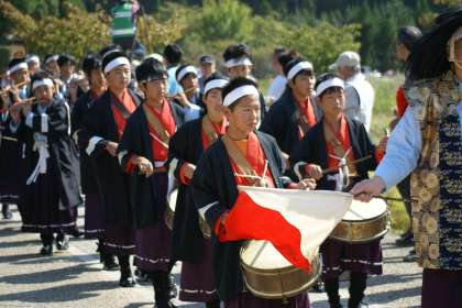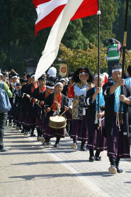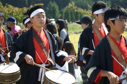 京北第二小学校の子どもたちは「さきがけフェスタ」のボランティアとして多数参加しています。また勇壮な維新勤皇山国隊として多くの子どもたちが参加しました。