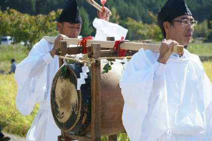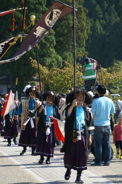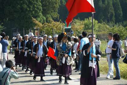 10月9日 午後1時,山国神社を発御した山国軍楽隊と御輿は各町内を回り無事,御霊神社に到着しました。楽隊として役目を果たした子ども達や地域の方,役員の方々本当にご苦労さまでした。