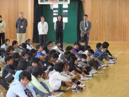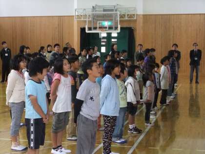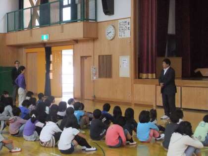 10月11日 3日間の休みも終わり,今日から後期前半が始まりました。始業式では,校長先生が「休み中は交通安全に気をつけましたか」「前期のことや通知票など、家族の方にお話をしましたか」「後期は104日、たくさんの行事があるので、これからもがんばりましょう」などの問いかけに、元気に答えていました。また、10月9日に開催された「山国さきがけフェスタ」にもたくさんの児童が参加し、みんな思い思いに楽しんでいたようでした。
