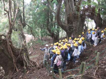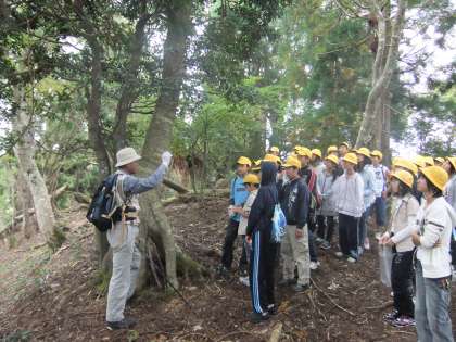 10月11日 伏条台杉は,御所や二条城の家具の材料に使われたそうです。今も切り出した跡が残っています。また,伏条台杉だけではなくこの森林には100年以上も経っているしきびの木やアセビの木が育っています。