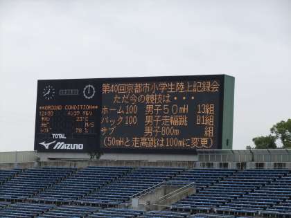 10月15日 今日は,京都市小学生陸上記録会が西京極陸上競技場で行われました。本校からも6年生が参加しました。あいにくのコンディションで走り高跳びやハードルなどがなくなり,100m競走に変更になりました。参加した子ども達はどの子どももベスト記録を出しました。