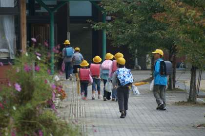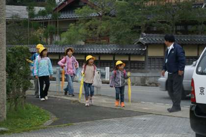 今日は学校安全の日です。安全について改めて確認し登校指導をしています。挨拶も元気よく子どもたちは登校しています。
