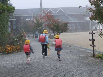 10月18日 霧の濃い中,子ども達は元気に登校してきました。昨日からスタートした「あいさつの道」。朝から子ども達の爽やかなあいさつが飛び交っています。