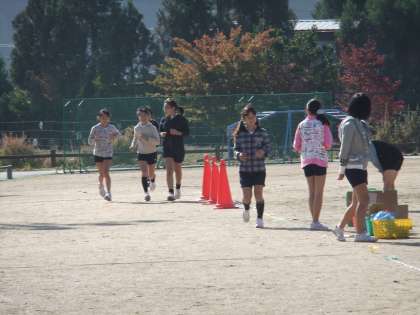 11月4日 今日の京北は,暖かい朝を迎えています。11月に入り,周りの景色も本格的に紅葉が進んできました。中庭からの景色の中にも紅葉の様子がうかがえます。その中,大文字駅伝予選に向けて高学年が頑張って走っています。