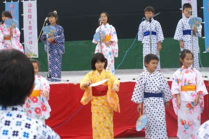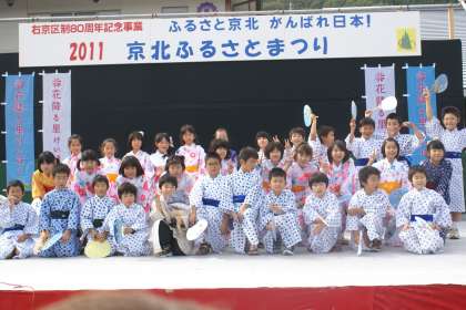11/3日京北まつりがありました。3年生と4年生の子どもたちが「丹波おんど」を披露しました。音頭・踊りは3年生で太鼓は4年生がしてくれました。音頭にのせて踊りも披露しました。