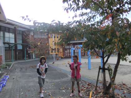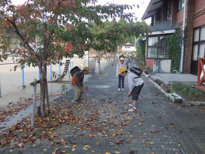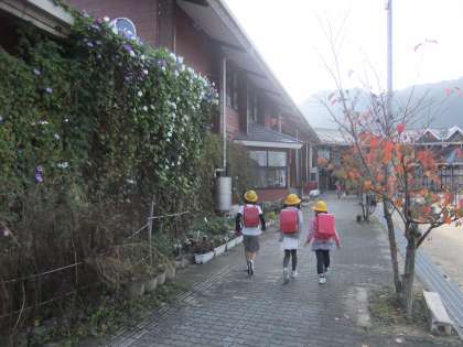11月8日 今朝の京北は9度でした。子ども達の歩いている「あいさつの道」の桜も落葉が進み,足下には枯れ葉が散乱しています。今度行う焼き芋大会に使えそうです。
