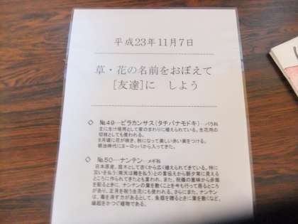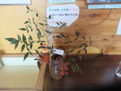 11月9日 今週も地域の方から野草が届きました。今回は,実のあるものです。多目的ホールで子ども達のよく見える所に置いてあります。たくさん覚えてね。