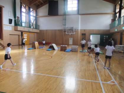 11月21日 体育館では4年生が飛び箱運動をしていました。台上前転にチャレンジで,マットでの前転をマスターし,そのことを生かしてさらにレベルの高い台上前転にチャレンジです。低い跳び箱から高い跳び箱へレベルアップしていくことにチャレンジしていました。一生懸命練習している姿に思わず,「頑張れ!」と声かけしました。