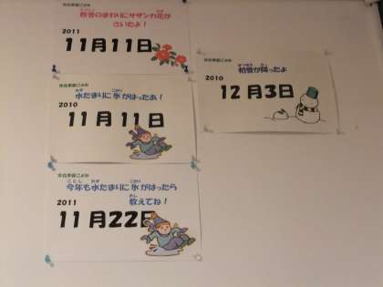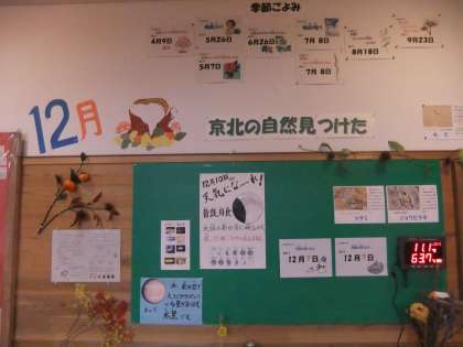12月6日 毎月の季節の様子を子ども達に紹介している花暦コーナー。昨年は,12月3日に初雪が降りました。今年は,思った以上に暖かい日が続いています。このボードに数字が入るのはいつになるかな?