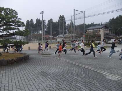 12月12日 今朝の京北は,気温が下がって寒さが厳しい日になりました。その中を子ども達は,朝マラソンで元気に運動場を走り出しました。校区内1000メートルを走って運動場に戻ってきたときは,みんな体がほっかほっかになっています。目も覚め,体もしっかり起きて,さあ学習の始まりです。