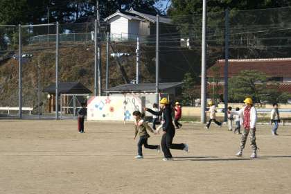 今年最後の全校遊びです。黄色い帽子の6年生がおにでみんなで楽しく遊びました。