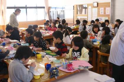 今日はお弁当給食の日です。給食時間には,ランチルームで全校でお弁当を食べて新年を祝いました。子どもたちは家から持ってきたお弁当をおいしそうに食べていました。今日のお弁当は,各家庭で学年に応じたお手伝いしながらつくったお弁当です。「たまごやきを作ったよ。」「ごはんをいれたよ。」「ウインナーをやいたよ。」等,子どもたちからさまざまな声があがっていました。保護者の皆様,ご協力ありがとうございました。