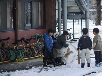 1月12日 前日に積もった雪で,雪だるまづくりや雪合戦をして,遊びました。