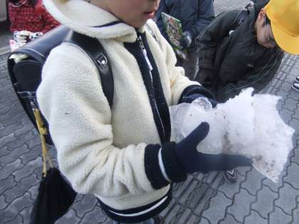 1月13日 今朝の冷え込みは,今年度最低気温となりました。しかし,太陽の日差しでその寒さを感じません。8時前に登校する子ども達の中には,手に氷を持って見せてくれる児童もいました。道路に表示された気温の横の信号は青です。信号のようにこの寒さに負けず,キリッと気を引き締めて学習に運動にゴー!