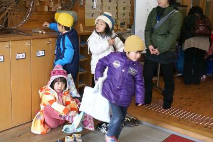 給食もおなかいっぱい食べ保育所へかえります。楽しい経験が出来たかな?京北第二小学校全校生徒みんなで待ってます。元気でみんなきてください。