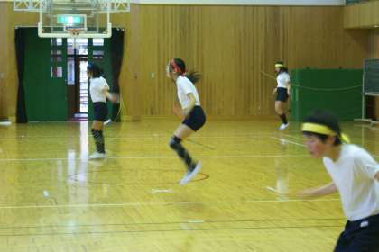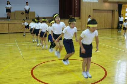 個人とび種目(前まわりや二重跳び,交差跳びなど)と団体種目(みんなでジャンプ)、みんな力いっぱい跳びました。