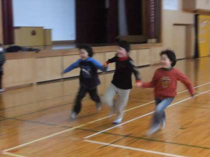 今日から、6年生中心に朝の全校あそびが始まりました。今日は,手つなぎおにをしました。みんな元気いっぱい,手をつなぎながら走り回っていました。