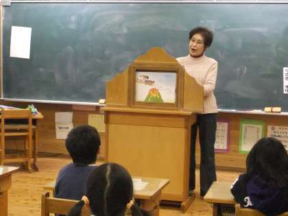 今日は、ボランティアの「読み聞かせ」が3年生でありました。本日は、「かぜのかみとこども」という題の紙芝居でした。みんな興味深く聞いていました。