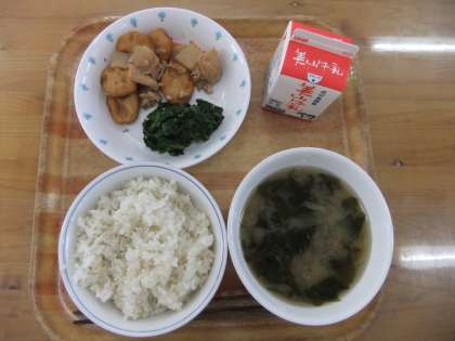 今日の献立は,麦ごはん・牛乳・平天とこんにゃくの煮つけ・ほうれん草のおかか煮・みそ汁でした。子どもたちは,少し甘めの平天が大好きで,最後まで大切に食べている子どももいました。地元のほうれん草は,新鮮で,緑の色がとても鮮やかで,おいしかったです。今日も早くみんな食べられました。