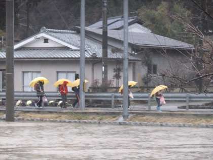 今朝の京北7時現在9度,暖かいですが雨が降っています!