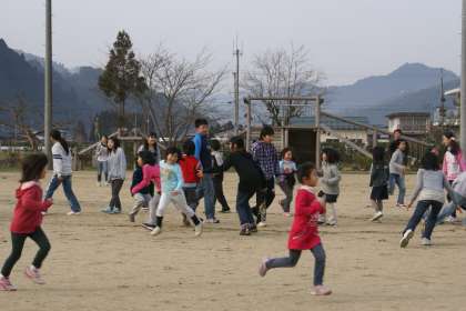 6年生が中心となって朝の全校遊びが今日は運動場でありました。久しぶりの運動場寒さはまだまだ,厳しいですが,みんな元気に走っていました。
