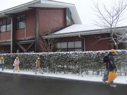 3月15日 今朝も気温マイナス1度と3日続きのマイナス日となりました。校内も通路以外は,雪で白くなっています。今日は,先輩中学生の卒業式です。雪が卒業式を祝っているようです。