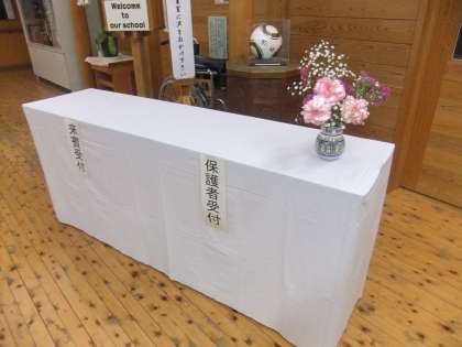 4月5日 入学式会場の体育館にも華が生けられ,準備が整いました。素晴らしい入学式にしたいと思います。