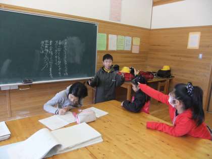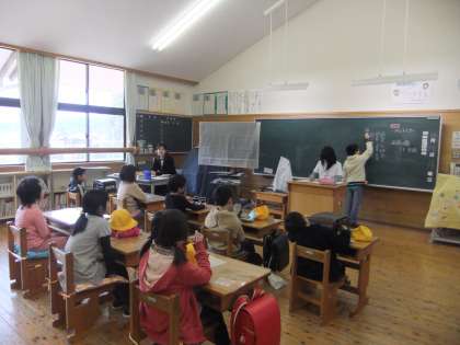 今日の3校時に今年度最初の地域班会を行いました。各地域毎に高学年の児童が中心になり,今年度の活動についての話し合いをみんなでしました。