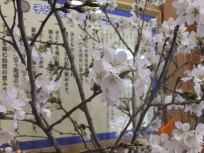 校庭の桜は咲いてませんが,校舎内は満開です!