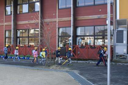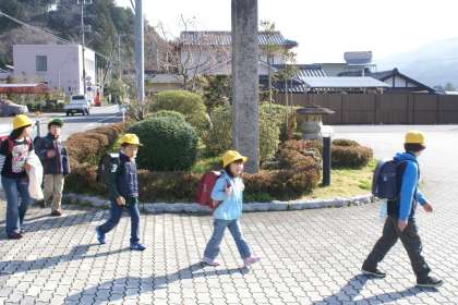 すがすがしい朝です。新しい学年,青空の下,今日の登校風景です。