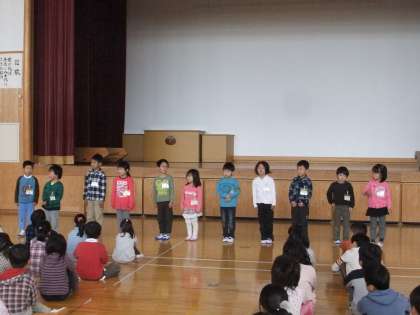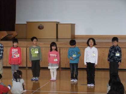 4月13日 今日は,金曜日。京北第二小学校では,毎週金曜日の朝は朝会です。今日は,新1年生の自己紹介がありました。一人一人が全校の前で自分の名前や好きなことを発表しました。とても元気のいい大きな声で発表できました。