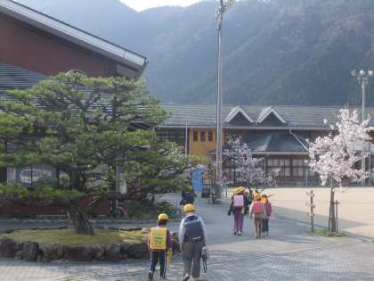4月17日 今朝の京北地域は快晴,登校後子どもたちも元気に外に飛び出しています。ボール遊び,一輪車などみんな仲良く遊んでいます。