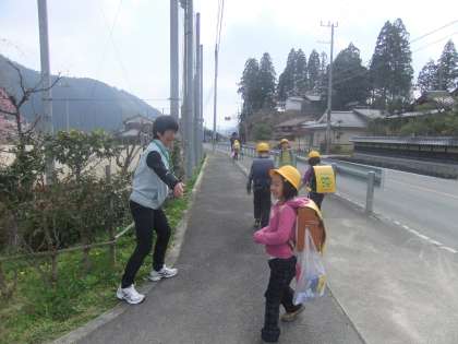 4月17日 今週も1年生が他学年よりも少し早く下校しています。担任と教務の先生達で手分けしながら,地域別に送っています。今日も元気に挨拶して帰りました。「今日は,絵が描けて楽しかった!」とにこにこしながら帰って行った子どもが印象的でした。