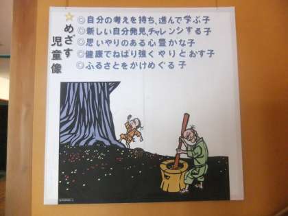 4月19日 校舎内の掲示物に本校の子ども像や子どもを育てる合言葉が掲示してあります。今年もこの子ども像や合言葉をめざし,教則員一丸となって子どもたちを育てます!