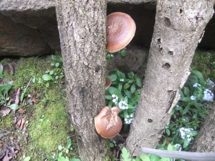 5月3日 今年も庭にあるしいたけの原木に立派なしいたけが出来てきました。この原木は4年前に菌を打ち込んだものです。毎年,10センチぐらいのかさを広げてくれます。
