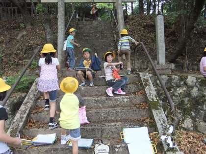 学校のまわりの様子を調べるために、学校のまわりを探検しました。地図を片手に見つけたものを書き込んでいきます。いつも通っている道にも新しい発見があり、興味をもって調べていくことができました。