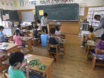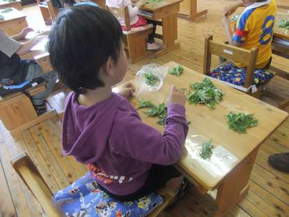5月16日 今日は,生活科でよもぎを摘みに近くの広場に行きました。やわらかい新鮮なよもぎがたくさん採れました。教室できれいにしました。